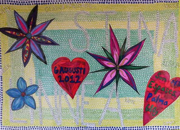 Några av detaljerna som är inkluderade i målningen skapad för en nyfödd liten människa.
